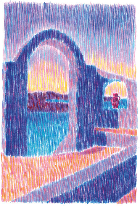 "Paphos", colored pencils, 12,8 x 21 cm.